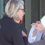 Spellings walks toward the protesters